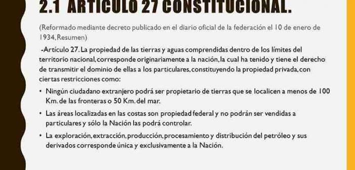 PORQUE LA REFORMA AL ARTICULO 27 CONSTITUCIONAL FUE UN GOLPE A LA ECONOMIA DE LAS FAMILIAS CAMPESINAS DE TODO EL PAIS A QUIENES LES ARREBATARON LA POSIBILIDAD DE SALIR DE PROPIETARIOS DE DIEZ HECTAREAS PARA AUMENTAR A VEINTE O MAS HECTAREAS SU PATRIMONIO DESTINADO A LA MANUTENCION DE SUS FAMILIAS, DARLES ESTUDIO Y ASEGURARLES UN FUTURO MENOS ESCABROSO DE LO QUE REALMENTE SUCEDIÓ POR LA MODIFICACION DEL ARTICULO 27 CONSTITUCIONAL. EL EJIDO ACTIVO, PRODUCIENDO, CON FAMILIAS UNIDAS EN EL TRABAJO Y BUSCANDO UN MEJOR PORVENIR, DESAPARECIO, SI DESAPARECIO EN GRANDES PROPORCIONES .